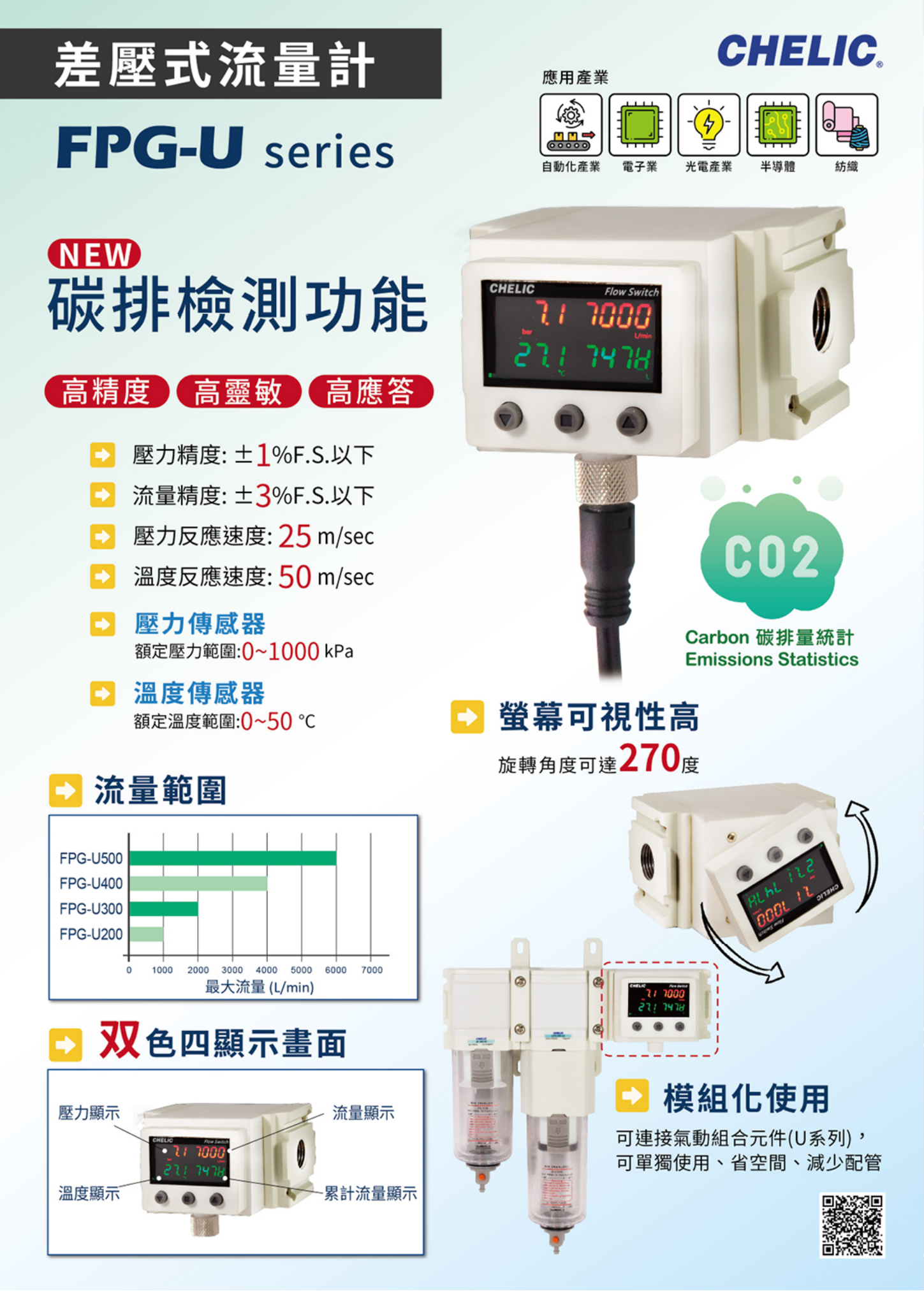 流量传感器-模組型的特色包括: